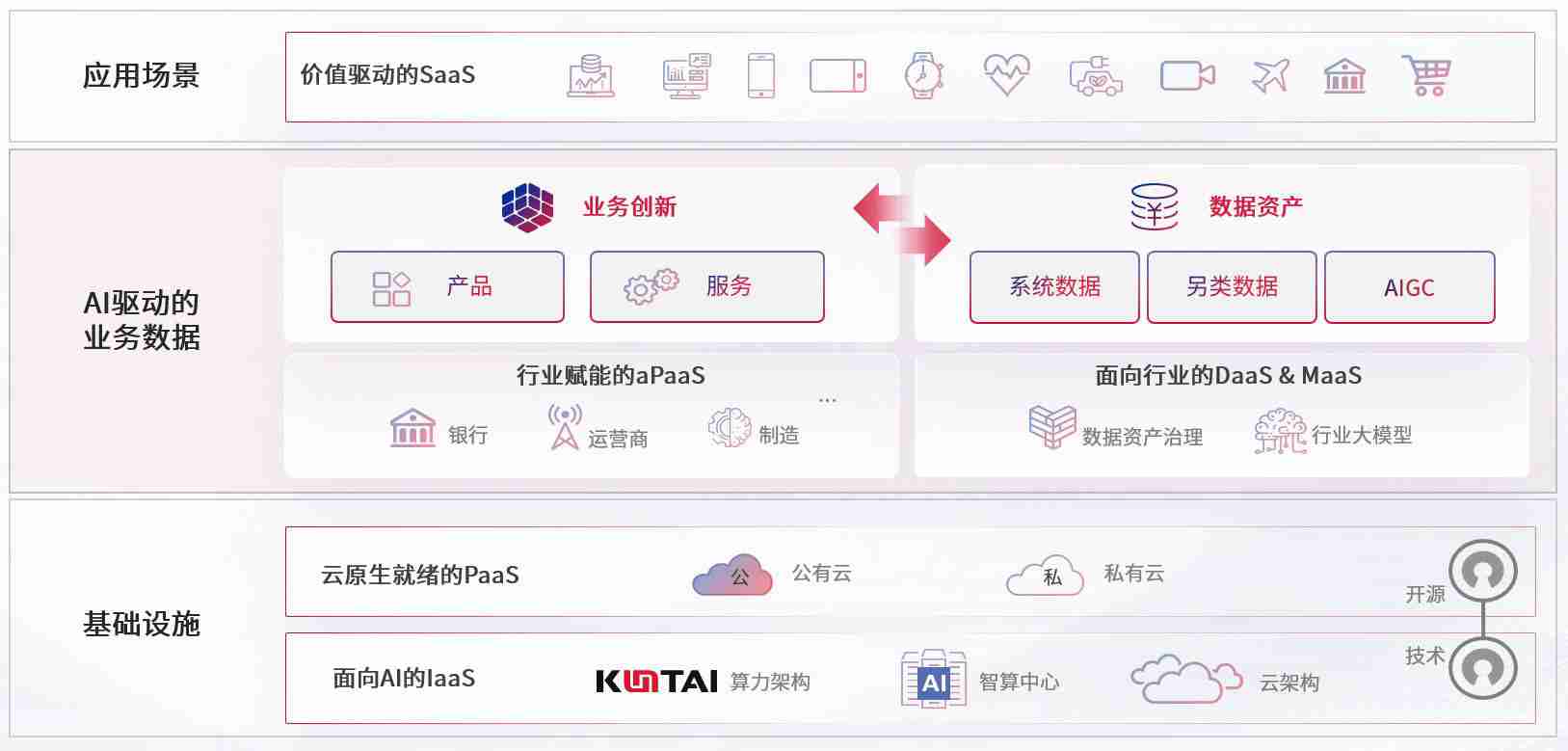 数字时代,,,,围绕企业数字化转型的关键要素,,,,尊龙时凯数码开创性的提出数云融合战略和技术体系框架,,,着力在云原生、、、数字原生、、、AI原生和信创产业上架构产品和服务能力,,,为处在不同数字化转型阶段的快消零售、、、、汽车、、、金融、、医疗、、、、政企、、、、教育、、、、运营商等行业客户提供泛在的敏捷IT能力和融合的数据驱动能力,,,构建跨界融合创新的数字业务场景和新业务模式,,,助力企业级客户建立面向未来的核心能力和竞争优势,,,,全面推动社会的数字化、、、智能化转型升级。。。。